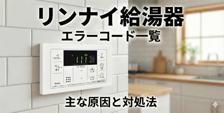 リンナイ給湯器のエラーコード一覧と対処法(2026年最新) 毎日のお風呂や家事に欠かせないお湯ですが、ある日突然、給湯器のリモコンに数字が点滅し、お湯が出なくなってしまうことがあります。この数字は「エラーコード」と呼ばれ … 続きを読む 2026年最新|リンナイ給湯器のエラーコード一覧と故障時の対処法
