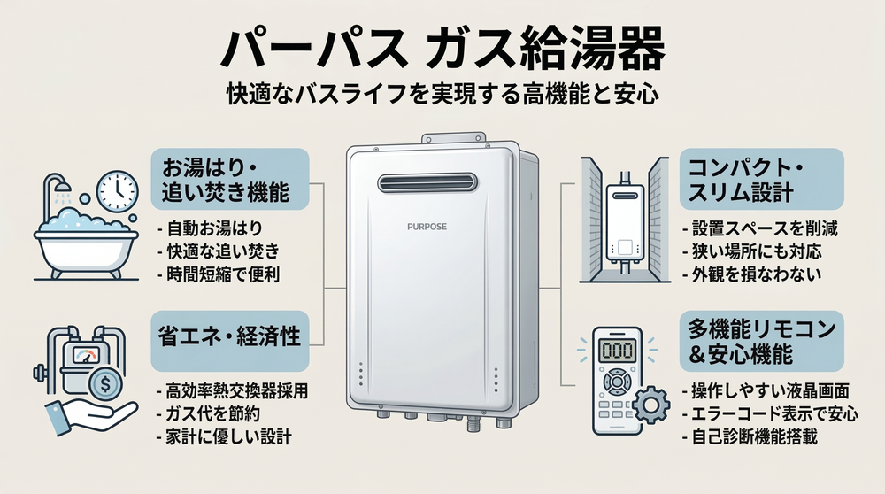 毎日の生活で当たり前のように使っているお湯ですが、それを支えるガス給湯器にはさまざまなメーカーや種類が存在します。中でも「パーパス」は、長年にわたり独自の技術力を培い、環境への配慮や利用者の健康管理に着目した独自性の高い製品を世に送り出しているメーカーとして知られています。